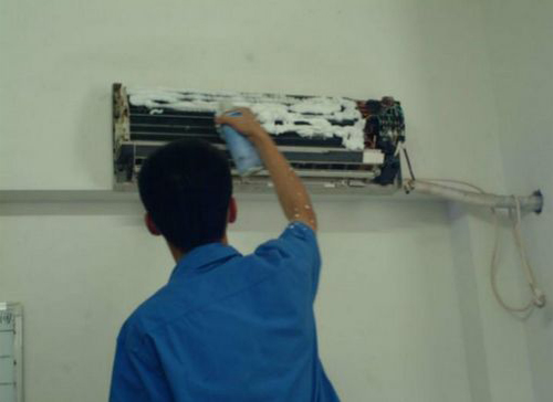 | 新乡空调维修师傅给新乡用户上门维修清洗空调。 |